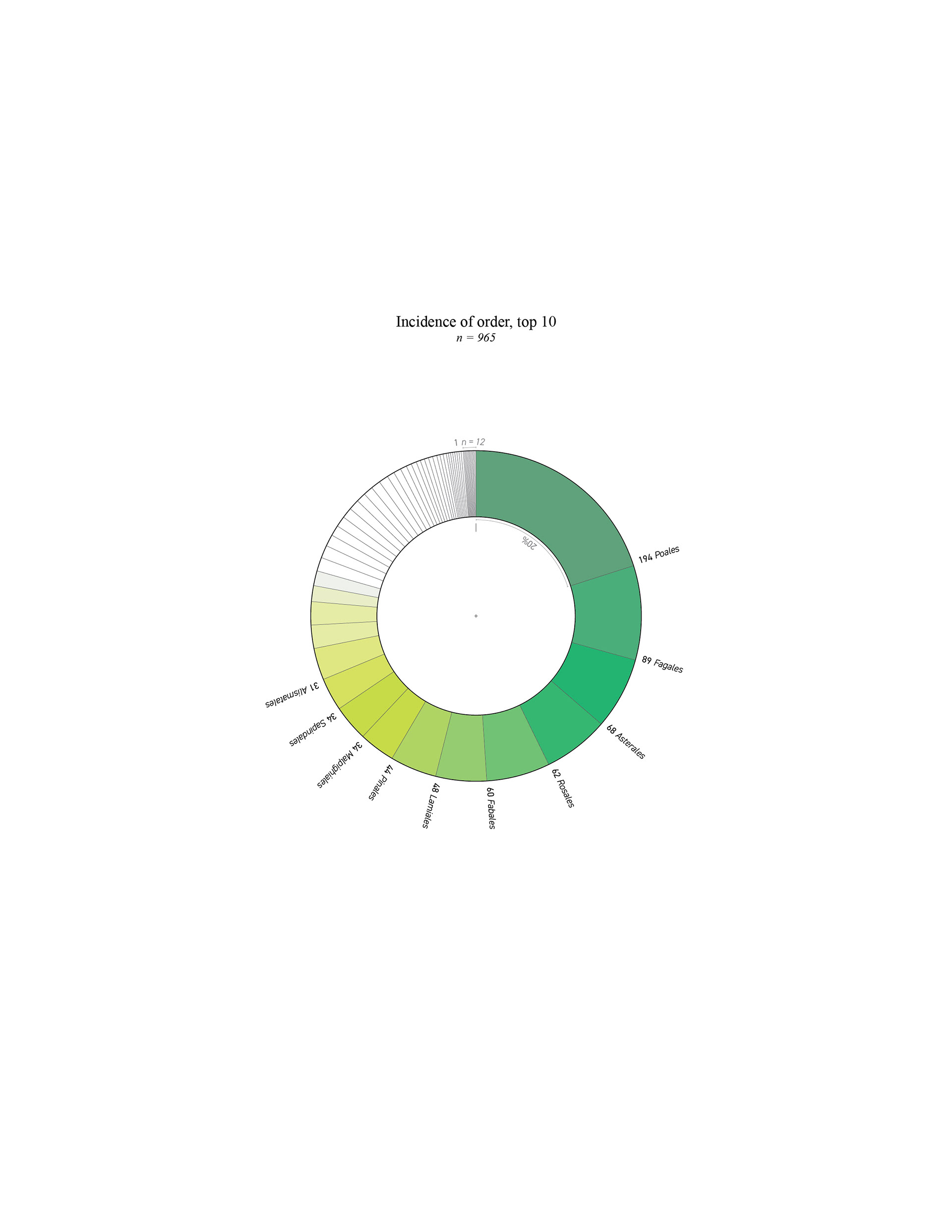 The phylogenetic distribution of all 647 Chromista, Fungi, and Plantae species cited by ASLA Student Award projects in the General Design category, 2005 and 2020, with dominant family groups highlighted (2023). Drawing by Fionn Byrne. Supporting data is available from figshare at 10.6084/m9.figshare.16892104. These data were derived from resources available in the public domain.