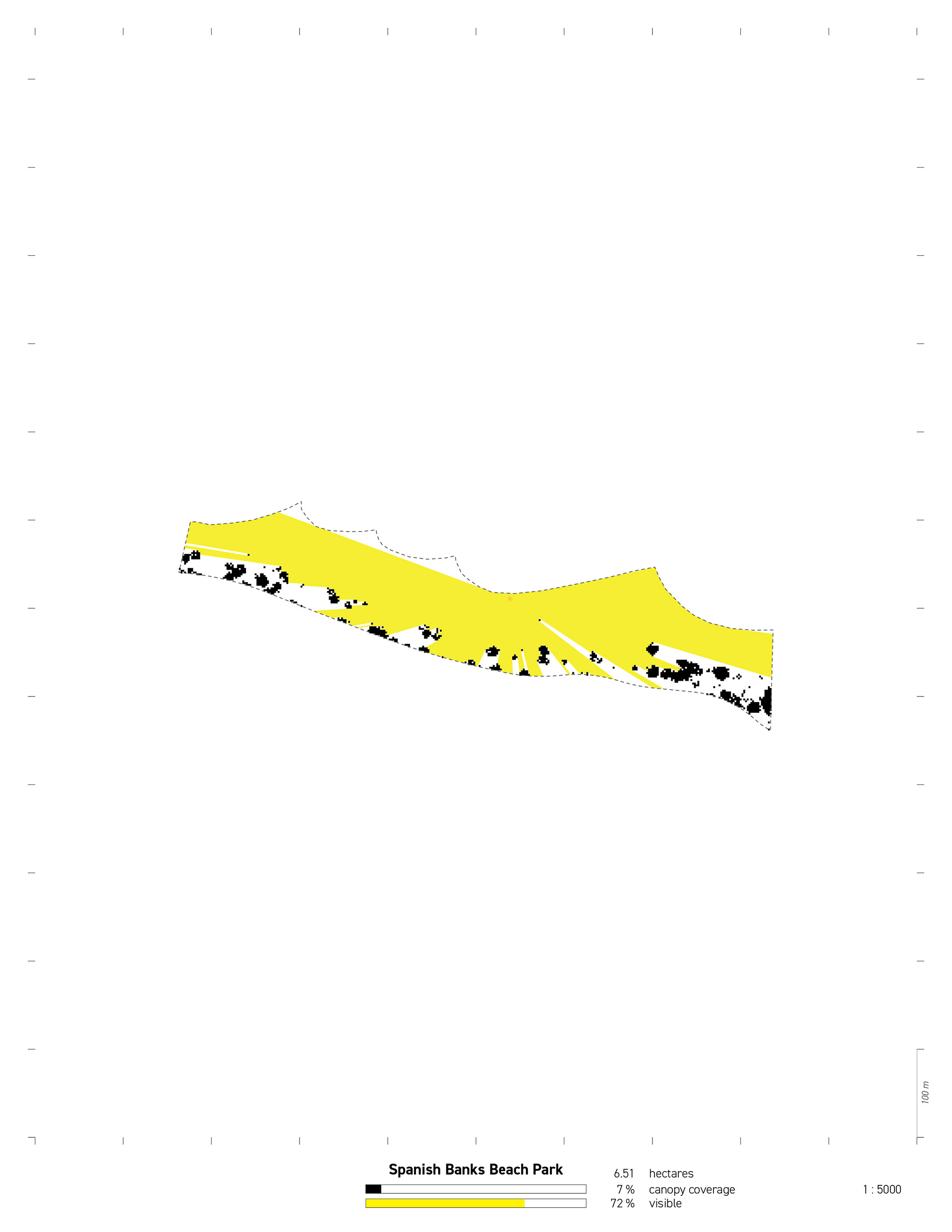 Georeferenced point-cloud vegetation data was simplified to generate a binary data set (open versus closed), itself used to determine the most visible point within a park and subsequently calculate the area visible from that location. Despite limitations, such as negating topography, this method yields a comparative spatial syntax of open space and canopy coverage, irrespective of a park’s scale or shape. Findings suggest that urban parks often share a spatial-ecological configuration characterized by a central space, open to above and ringed by a peripheral canopy. This definition matches Frederick Law Olmsted’s characterization of open space (Sutton, 1971), suggesting enduring consistency in the formal organization of canopy coverage in public parks.